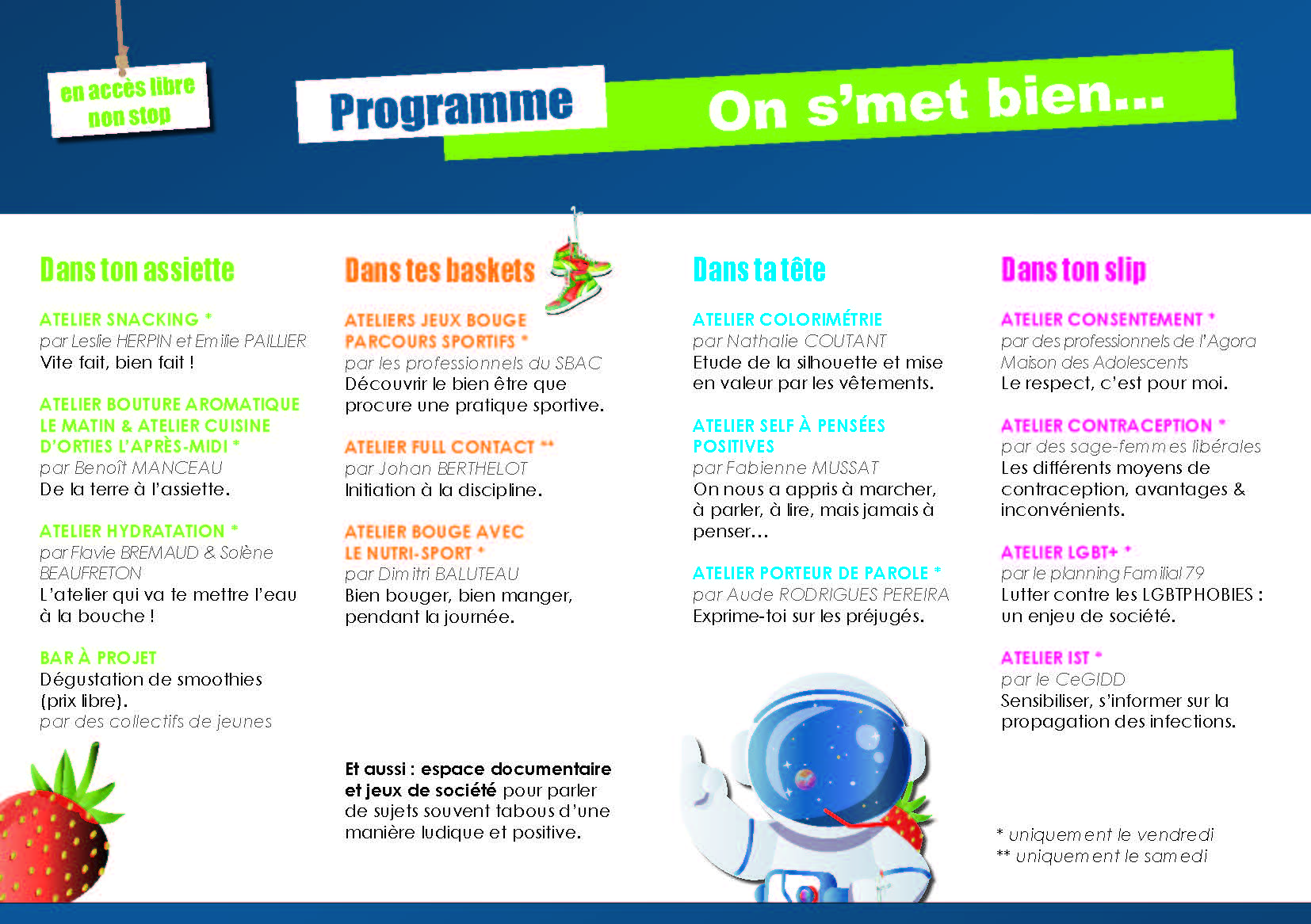 Au programme : jeux et ateliers autours de l'alimentation, le sport, la santé mentale et la sexualité !