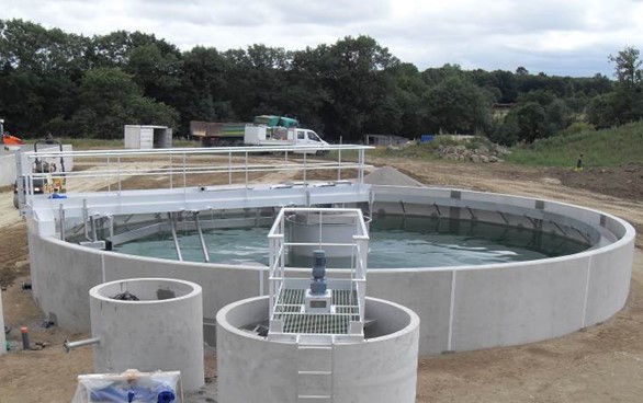 Le second grand ouvrage est le clarificateur raclé qui va présenter un diamètre de 11,90 mètres. Il a pour fonction de séparer par décantation les boues des eaux traitées avant leur rejet au milieu naturel.