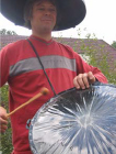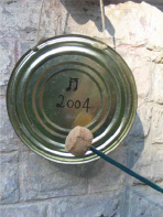 La grosse poubelle basse se percute de préférence au centre de la membrane avec une grosse mailloche feutrée (un bâton planté dans une balle de tennis).