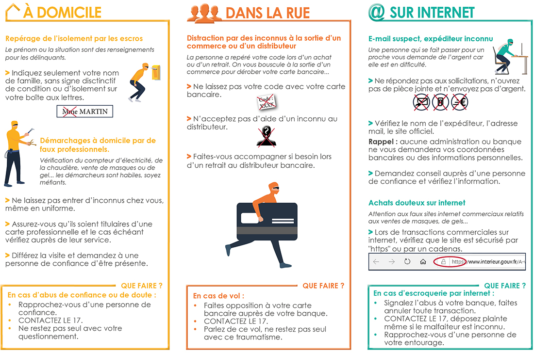 Aussi, le Conseil Intercommunal de Sécurité et de Prévention de la Délinquance (CISPD) du Bocage Bressuirais, avec ses membres du groupe de travail, et accompagné par la Gendarmerie et des collectivités, vous propose quelques conseils pour adopter de bons réflexes contre les arnaques.