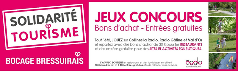 Pour soutenir l'activité touristique, l’Agglomération du Bocage Bressuirais lance une opération « solidarité tourisme ». Tout l’été, elle fait gagner 600 bons d’achat de 30€ pour les restaurants et 1 400 entrées gratuites pour les sites ou activités touristiques du territoire.