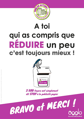 Face à ces très bons chiffres du tri, l’Agglomération du Bocage Bressuirais souhaite remercier les habitants pour leurs actions. Du simple mais efficace Stop pub apposé sur sa boîte aux lettres aux nouvelles habitudes de consommation, chaque geste compte pour réduire la quantité de déchets produits.