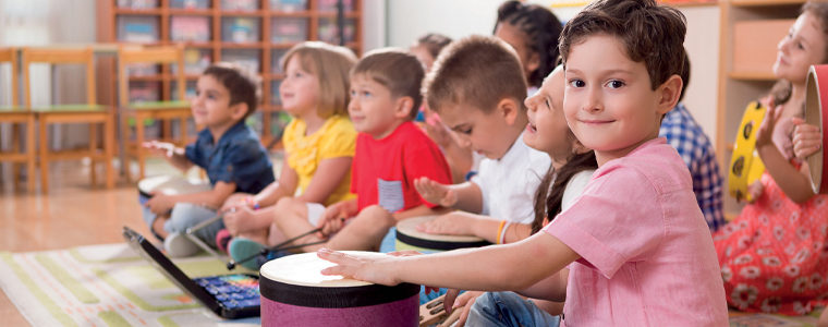 Éveil musical pour les 5-6 ans, premières expériences sonores par la pratique de jeux vocaux, rythmiques, corporels, sensoriels et premiers contacts avec les instruments,