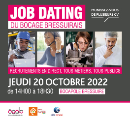 Le Job Dating aura lieu le jeudi 20 octobre 2022 de 14h à 18h30 à l’espace BOCAPOLE, Bressuire