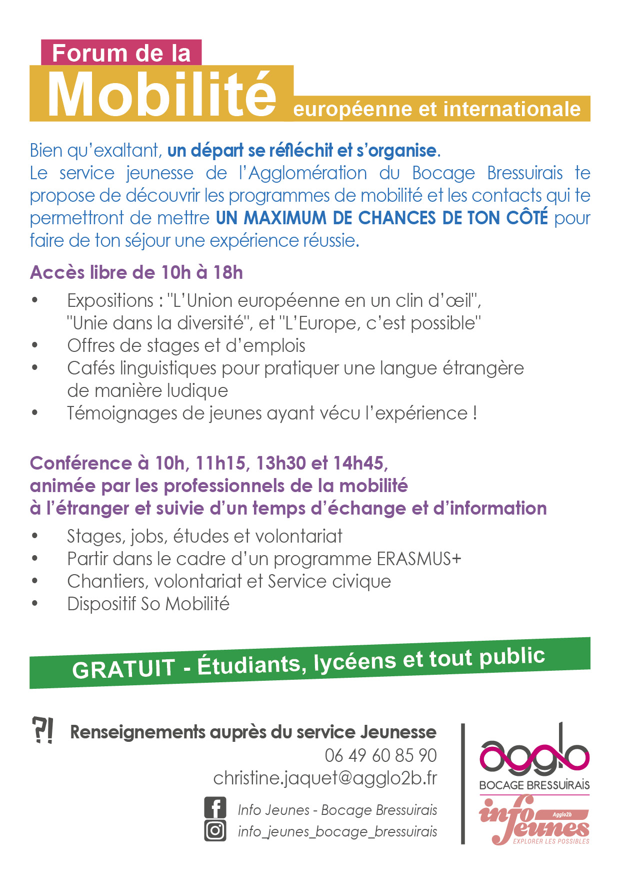 Mais bien qu’exaltant, un départ se réfléchit et s’organise. Pour cette raison, le service Jeunesse de l’Agglomération du Bocage Bressuirais organise le forum « Mobilité européenne et internationale », les 18 et 19 octobre prochains.