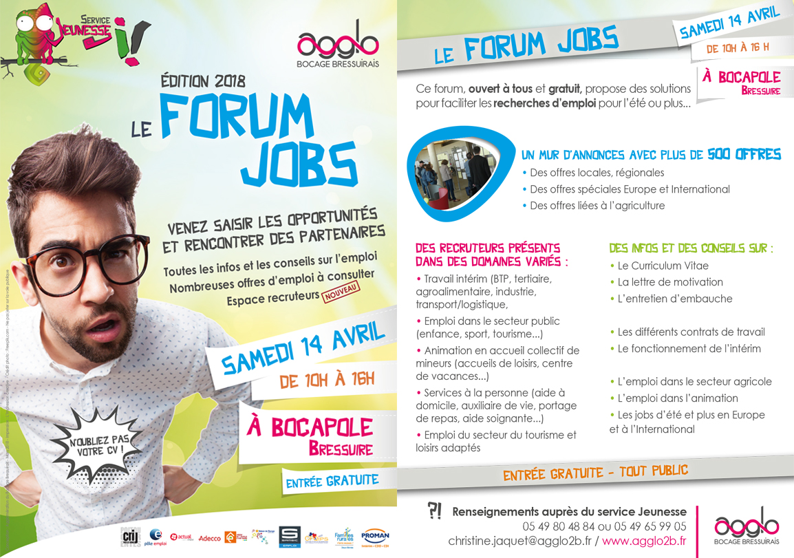 A la recherche d'un travail pour l’été ou plus, rendez-vous le samedi 14 avril à Bressuire (Bocapole) pour le Forum Jobs 2018.