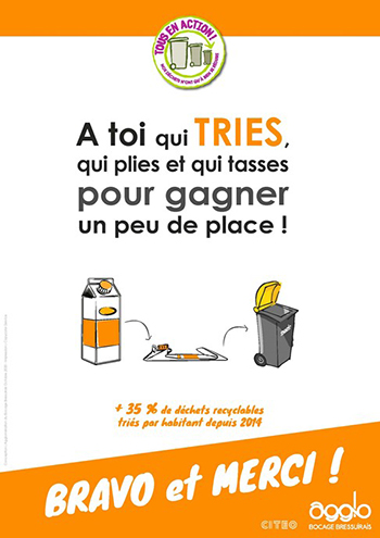 Face à ces très bons chiffres du tri, l’Agglomération du Bocage Bressuirais souhaite remercier les habitants pour leurs actions. Du simple mais efficace Stop pub apposé sur sa boîte aux lettres aux nouvelles habitudes de consommation, chaque geste compte pour réduire la quantité de déchets produits.