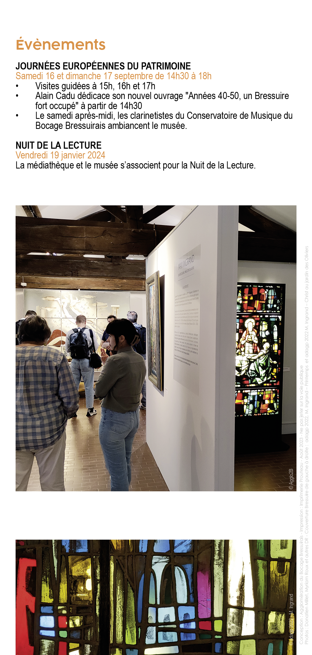 Bressuire est aussi la ville natale de Max Ingrand, (1908-1969) est un des plus grands verriers et vitrailliste français du XXème siècle. L’exposition organisée à l’occasion du cinquantenaire de sa mort en 2019 a permis de revisiter complètement l’espace qui lui est consacré. De nouvelles acquisitions (une table, des plaquettes de verre…) sont également à découvrir. (Retrouvez ici les expositions)