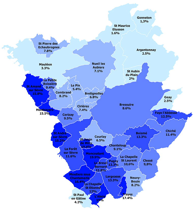 Le pourcentage moyen des zones humides sur l'Agglomération du Bocage Bressuirais est de 9,7%.