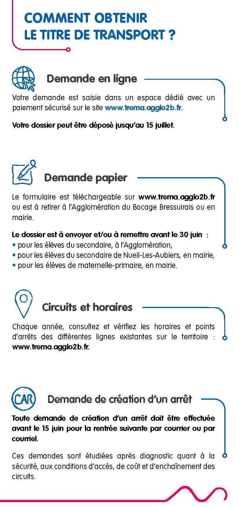 Les Pass Trema et les cartes de car des élèves en maternelle-élémentaire seront envoyées par courrier aux familles courant août si le paiement est effectué.